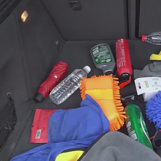 1pc Universal Car Storage Bag Double Mesh Trunk Storage Net Car Built-in Storage Bag with Car Fire Extinguisher Fixed Net
